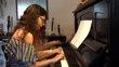Jeune femme trisomique apprenant à jouer du piano à la maison - Vidéo 4K